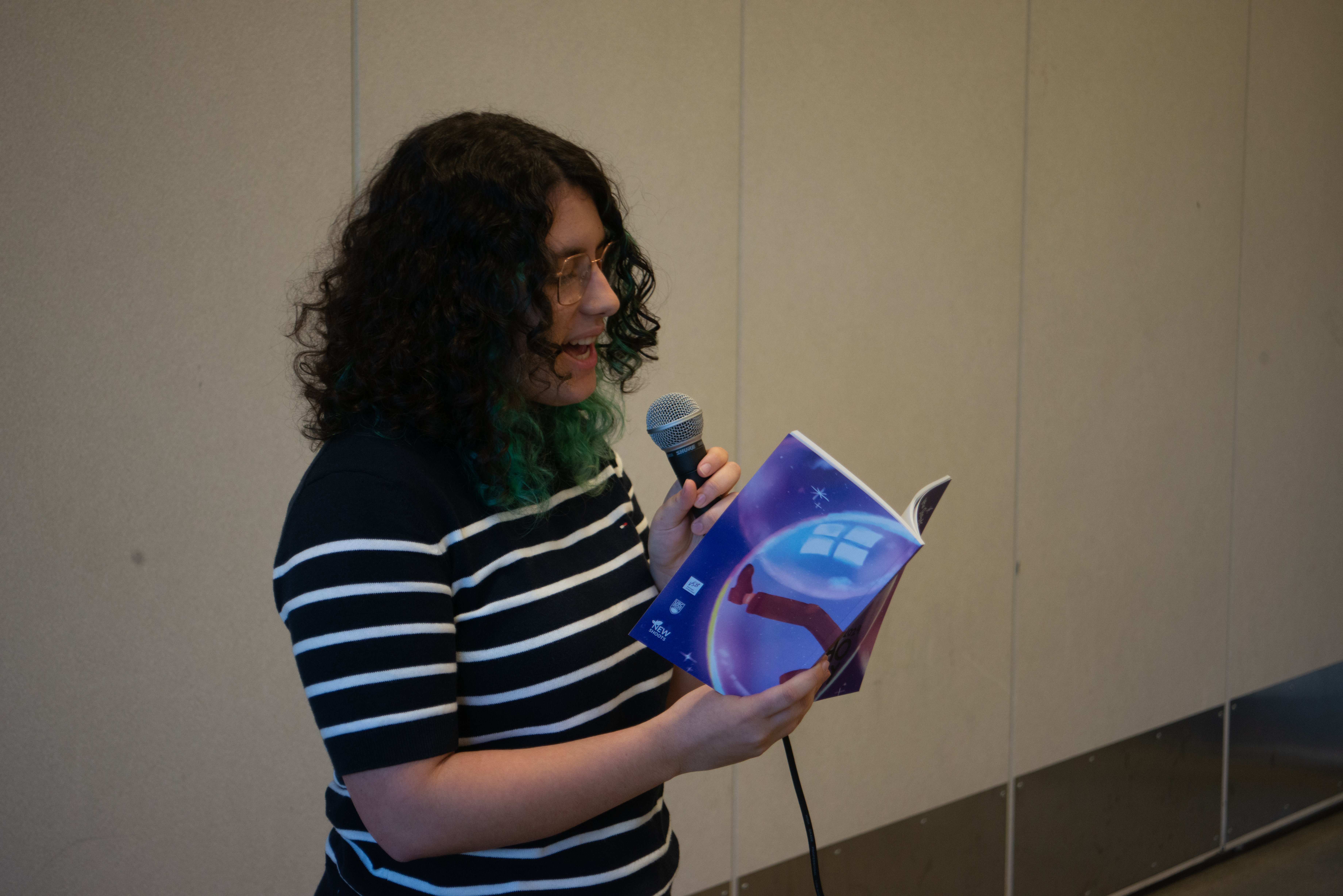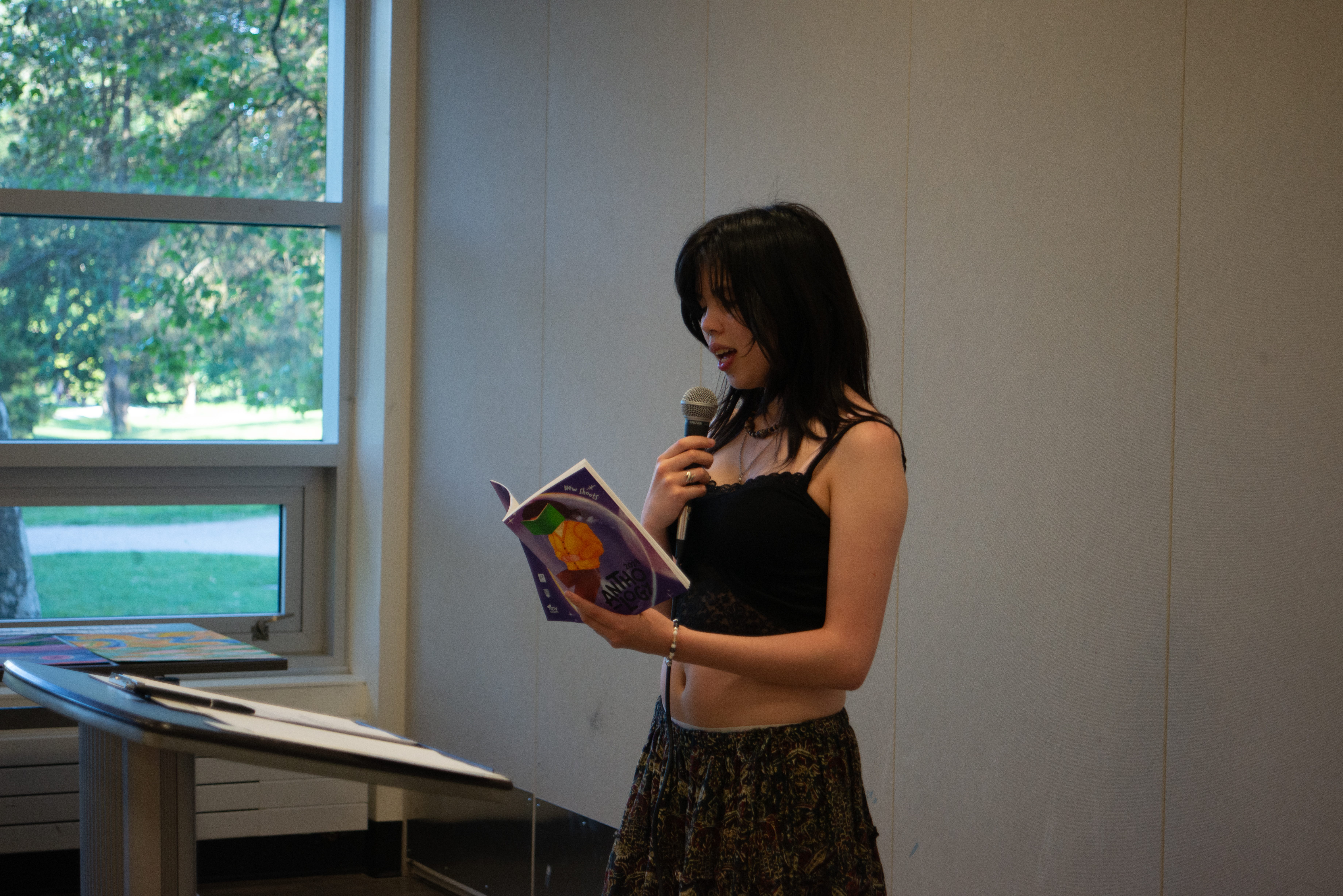 The 2024 New Shoots Anthology Launch was a smashing success! Students, family, friends, teachers, UBC faculty, and members of the writing community attended to celebrate the publication of our beautiful book. Alongside a dozen talented student readers, we heard from renowned author Evelyn Lau, faculty supervisor Tanya Kyi, and mentors Ihomehe Agbebaku and Carolina Leyton (MFA and MACL respectively). It was a humbling and rewarding evening full of laughter, excitement, and awe at the talent of our young participants. Thanks to all who came out and showed their support!