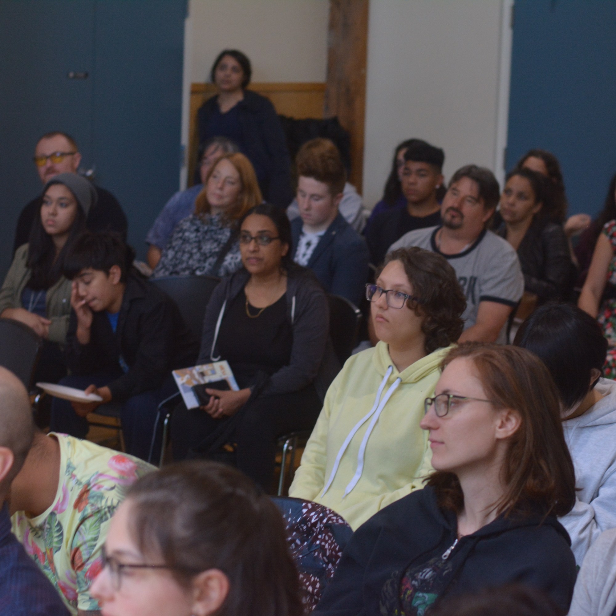 In 2019 we celebrated the publication of the New Shoots Anthology with a standing-room-only launch at the False Creek Community Centre Tyee Room. It was a sunny evening with a beautiful view of the comings and goings of Granville Island. Eleven published teen writers read their writing to the jubilant crowd.